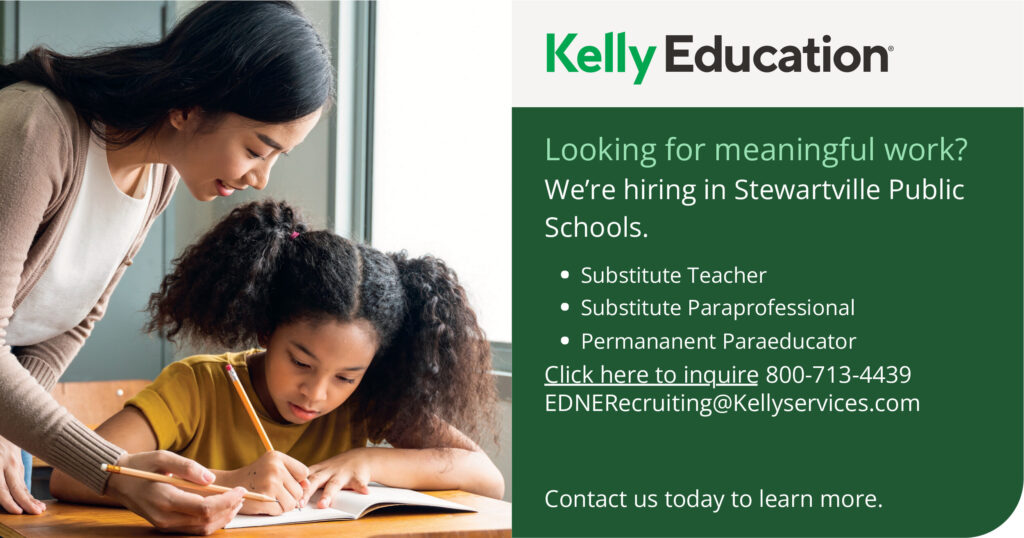 The Stewartville School District has partnered with Kelly Education to fill our Substitute Teacher and Substitute Paraprofessional positions.